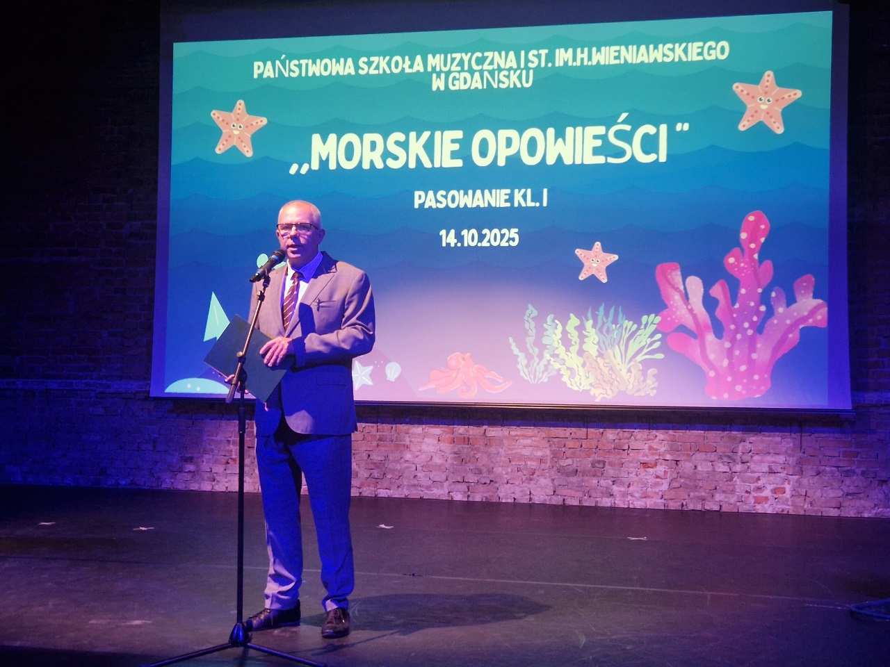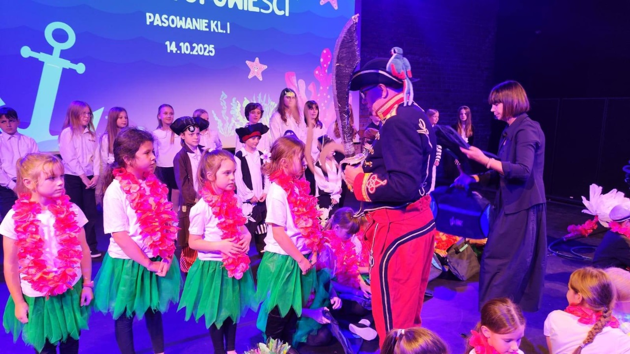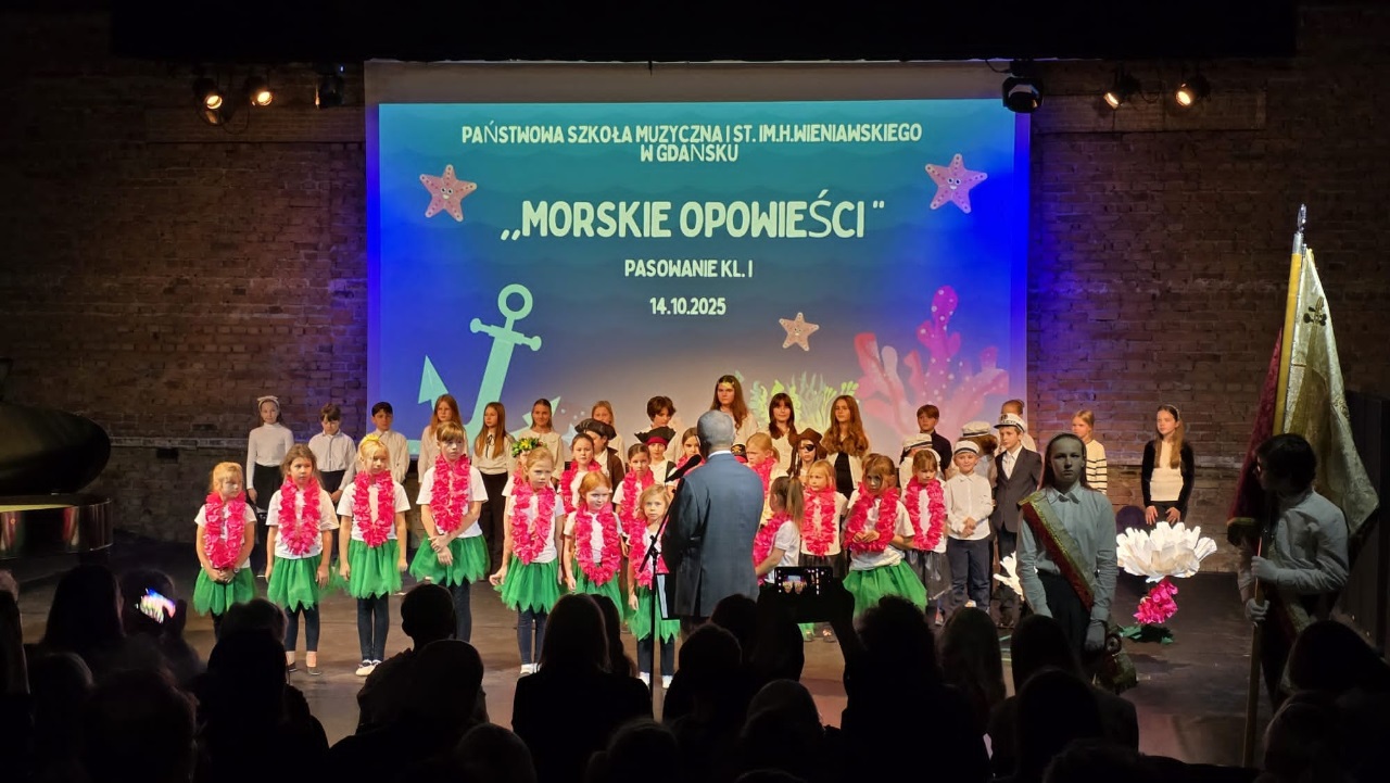 We wtorek 14 października, w Dniu Edukacji Narodowej, w gościnnej sali GAKu "Stacja Orunia" - nasza społeczność szkolna świętowała pasowania na ucznia kl. I. Program "Morskie opowieści" przygotowali nauczyciele - p. Mariola Nadolska-Dudziak oraz p. Bartosz Śpiewak. Przy fortepianie towarzyszyła p. Justyna Sagan. Koncert uświetniła swoim recitalem na gitarze p. Iwona Kacprzak, nauczycielka naszej szkoły.