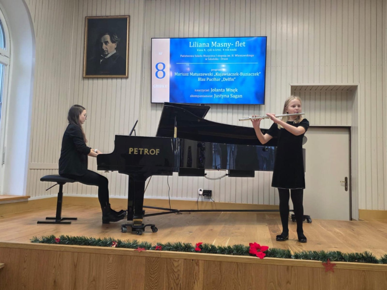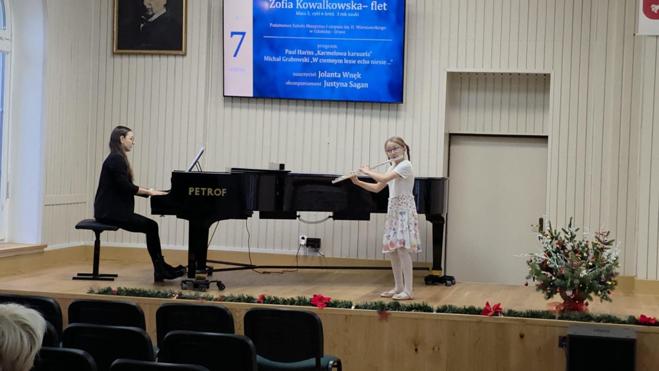 W dniach 5-6 grudnia Zofia Kowalkowska oraz Liliana Masny z klasy fletu p. Jolanty Wnęk brały udział w III Ogólnopolskim Powiślańskim Konkursie Intrumentów Dętych w Kwidzynie. Zofia zajęła I miejsce a Liliana - wyróżnienie. Pani Jolanta Wnęk zostałą nagrodzona dyplomem za wyróżniające przygotowanie uczennicy, a p. Justyna Sagan - za wyróżniający akompaniament. Gratulujemy!